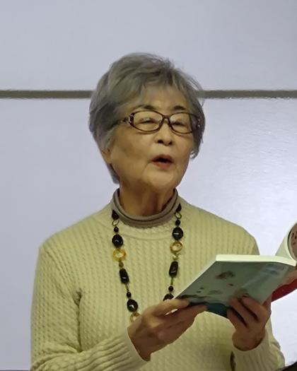 泰恵さんが金子みすゞの「こだまでしょうか」「私と小鳥と鈴と」「大漁」を朗読。