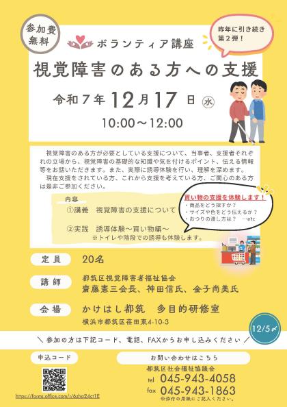 ボランティア講座「視覚障害のある方への支援」開催のお知らせ