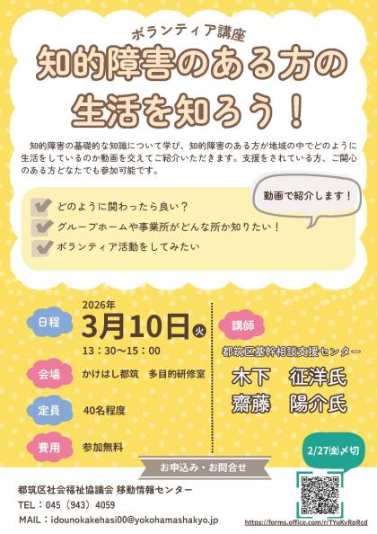 ボランティア講座「知的障害のある方の生活を知ろう!」開催のお知らせ