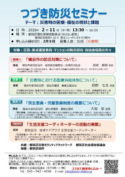 例年開催の「つづき防災セミナー」を下記の日程、内容で開催します。
